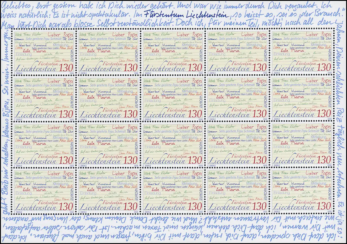 1470 Europa - Der Brief / Anredeformen, Kleinbogen **
