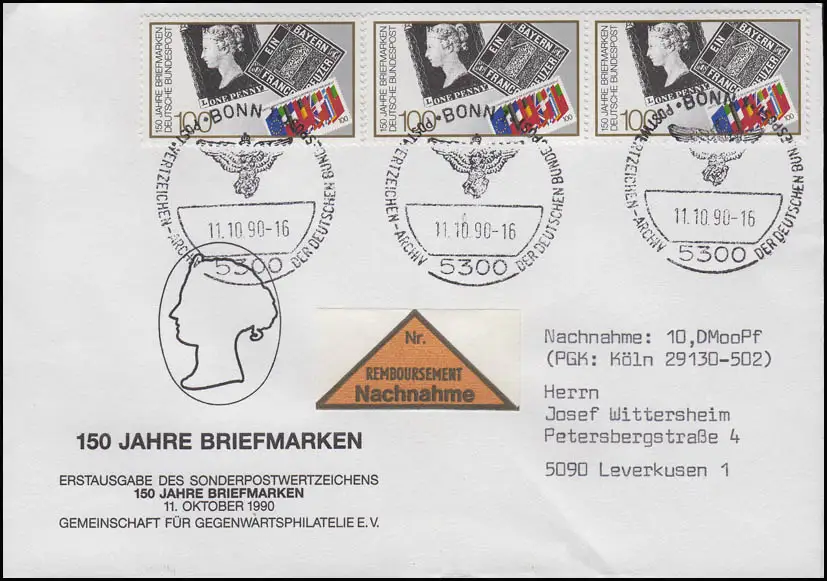1479 Briefmarken, MeF NN-FDC ESSt Bonn Postwertzeichen-Archiv 11.10.1990