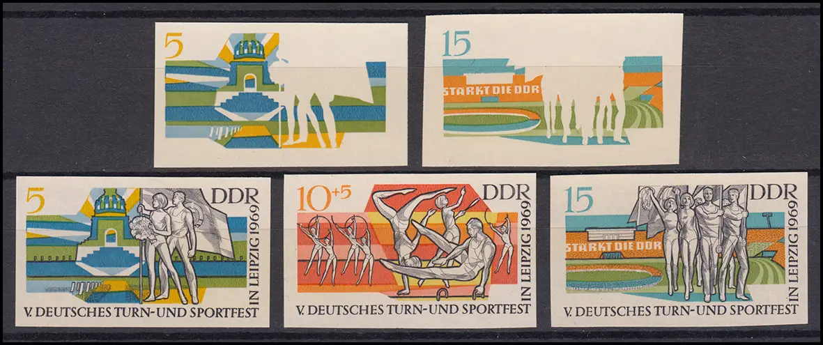 1483-1485PH Turn- und Sportfest Leipzig: 5 ungezähnte Phasendrucke, Set **