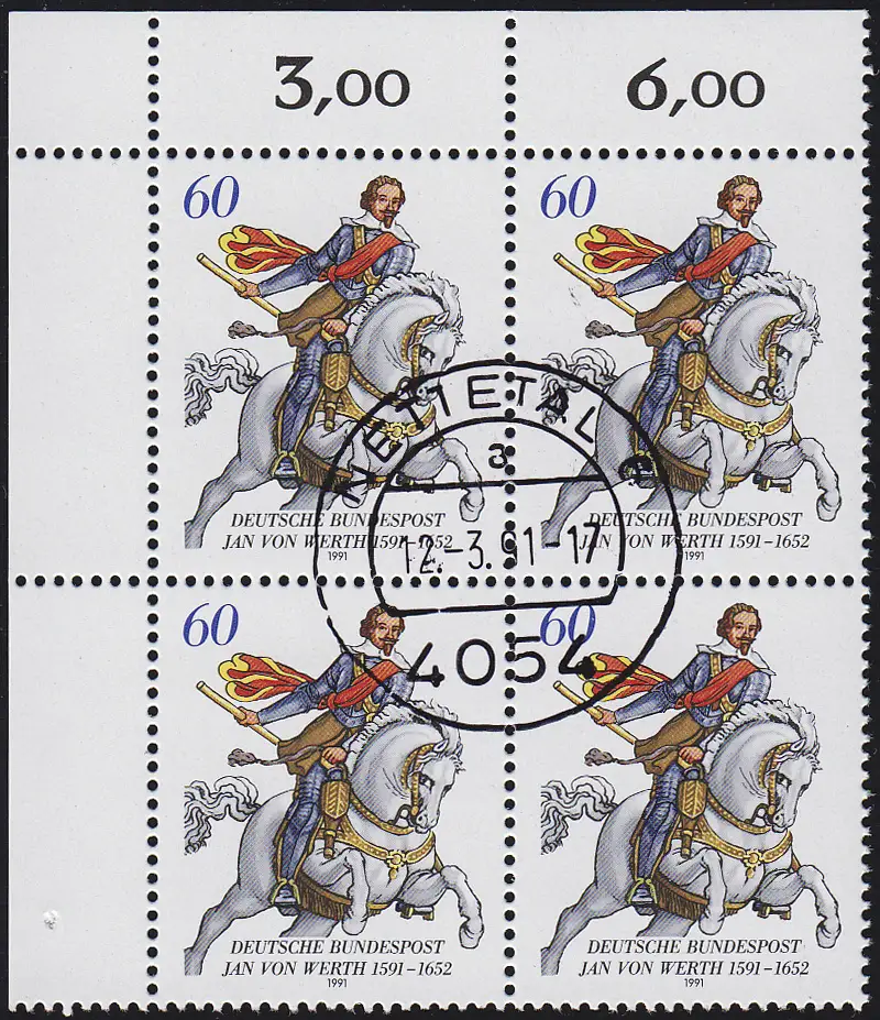 1504 Jan von Werth: ER-Vbl. oben links, zentrischer Vollstempel NETTETAL 12.3.91