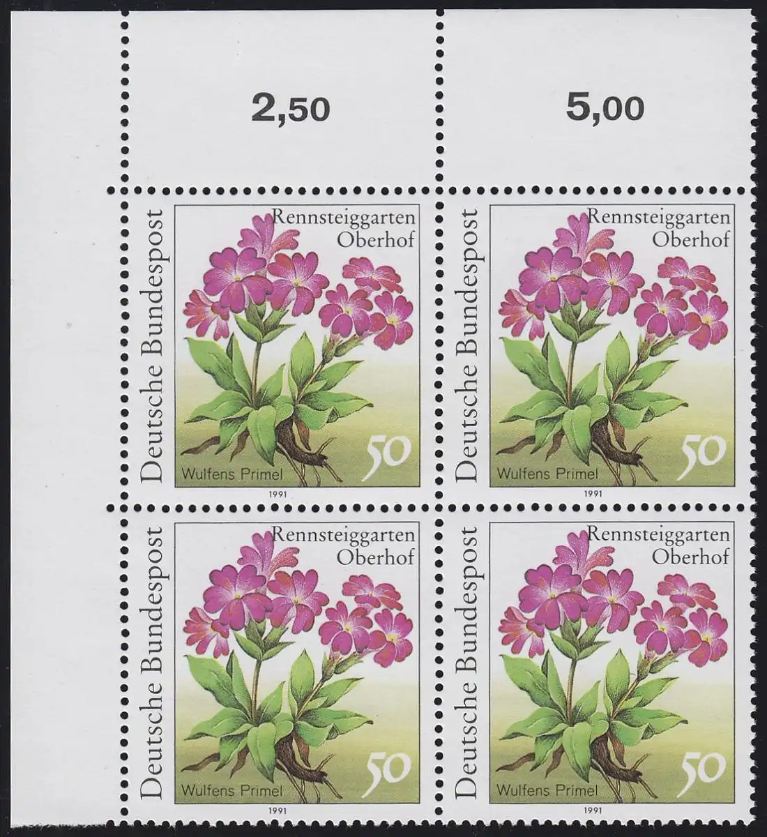 1506F Rennsteiggarten Wulfens Primel 50 Pf. OHNE Fluoreszenz, Eck-Vbl. o.l. **