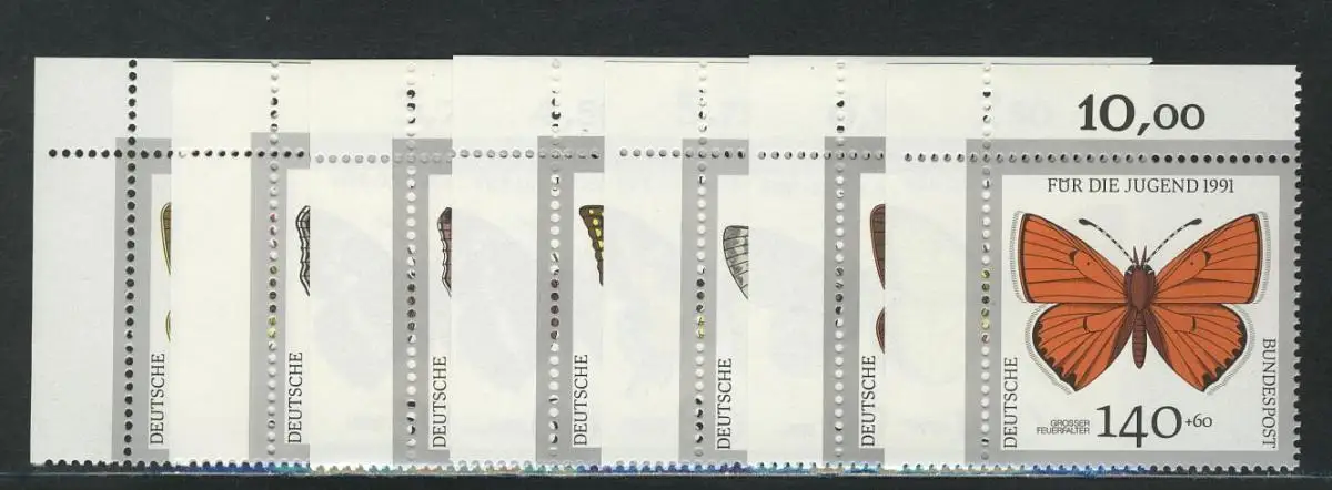 1512-1519 Jugend Schmetterlinge 1991, Ecke o.l. Satz **