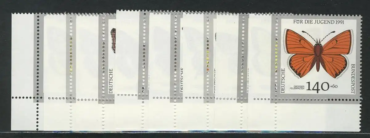 1512-1519 Jugend Schmetterlinge 1991, Ecke u.l. Satz **