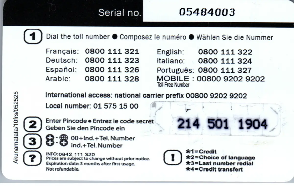 15410 - Schweiz - Africa Phone , Akunamatata , OK Telekom