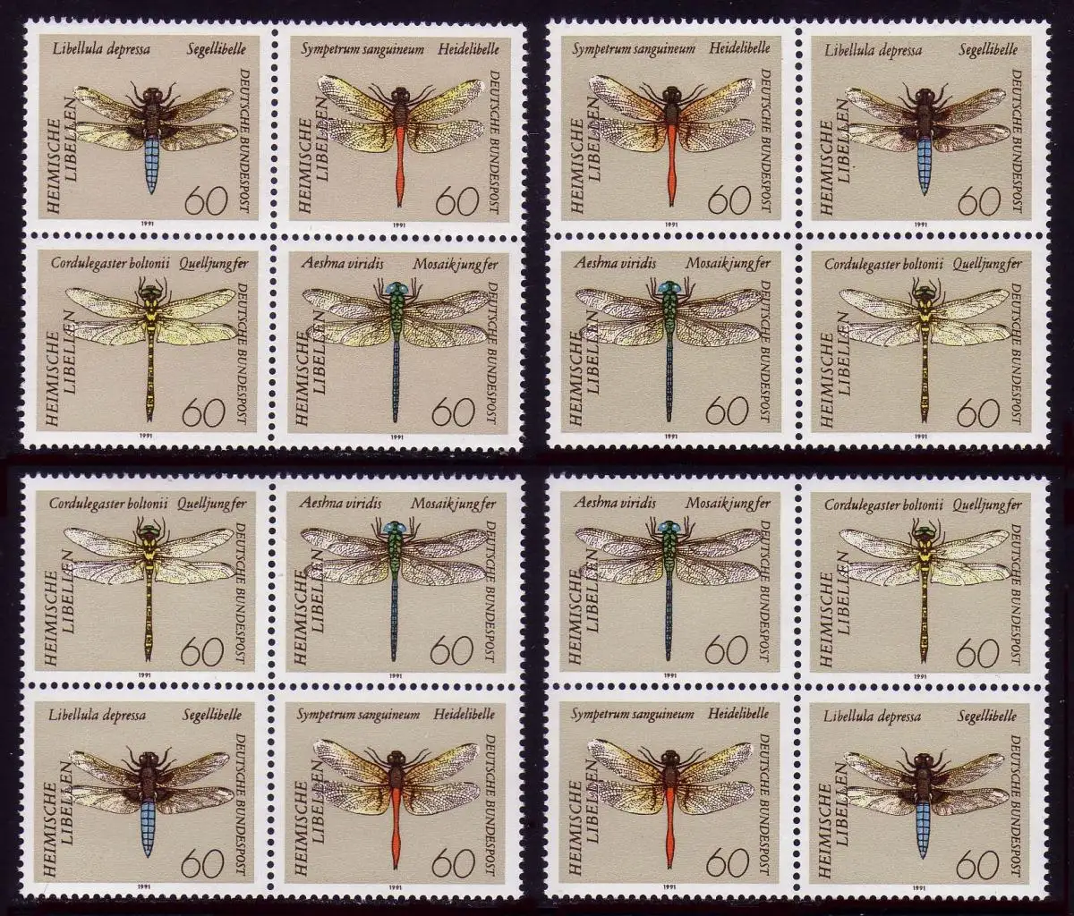 1546-1549 Libellen 1991, 4 verschiedene Viererblöcke, Set ** / MNH
