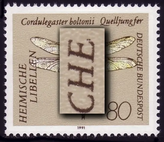 1551 Libellen 80 Pf, PLF Punkt am letzten E in HEIMISCHE, Feld 10, **