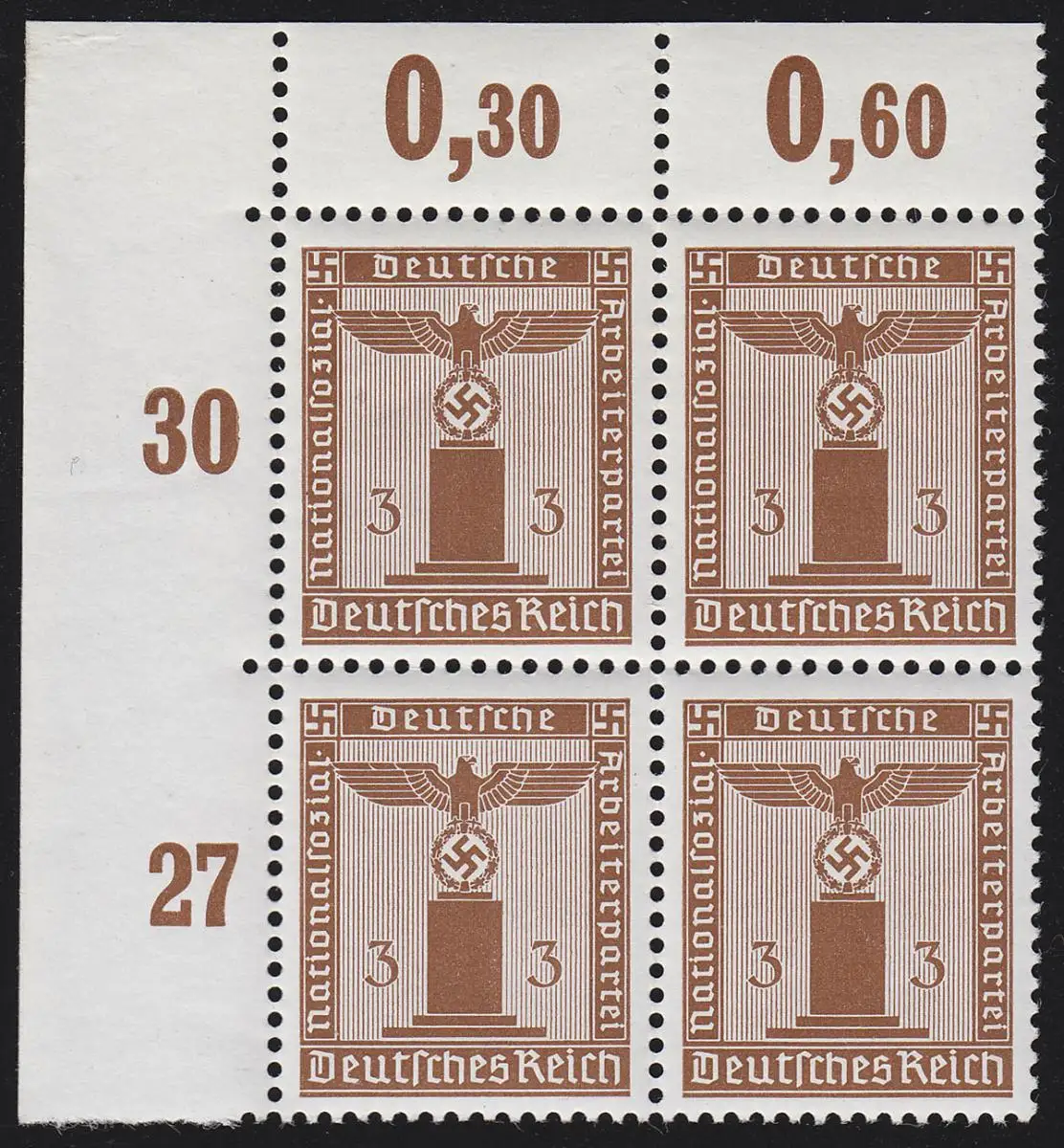156y Parteidienstmarke 3 Pf. WAAGERECHT geriffelt, Eck-Vbl. o.l. postfrisch **