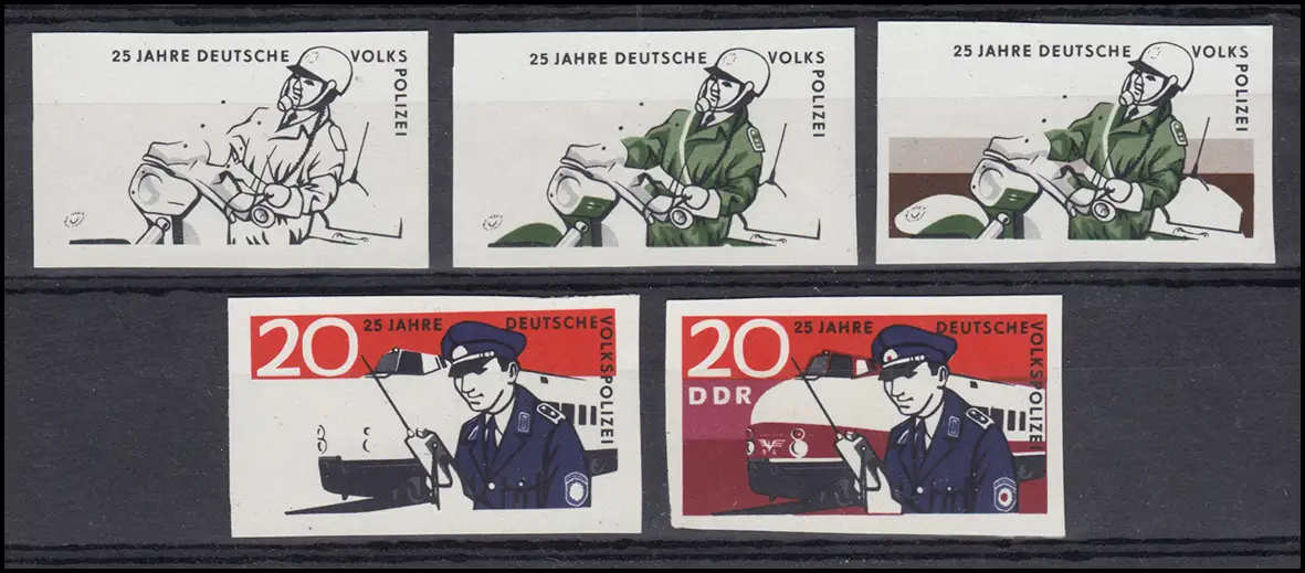 1579PH / 1582PH Deutsche Volkspolizei 5+20 Pf: 5 Phasendrucke ungezähnt, Set **