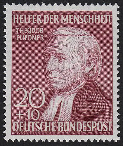 158I Theodor Fliedner 20+10 Pf, Walzendruck (kleines Markenbild, lilarot) **