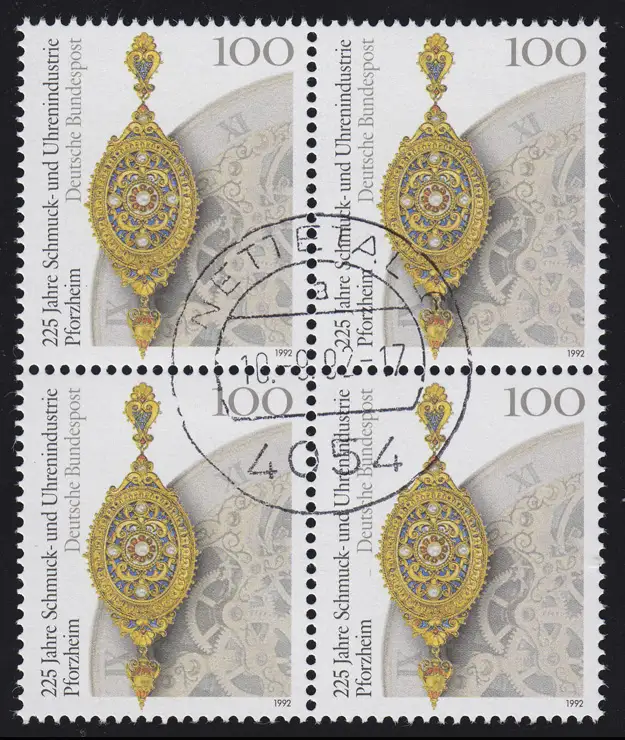 1628 Schmuck- und Uhrenindustrie: Viererblock, zentrischer Vollstempel NETTETAL