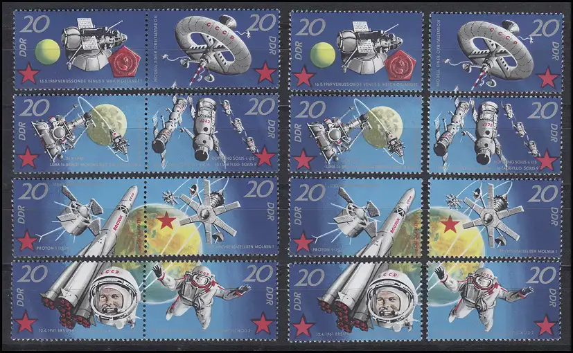 1636-1643 Weltraumflug 1971, 14 ZD mit 4x3er und 10x2er und 8 Ezm, Set **