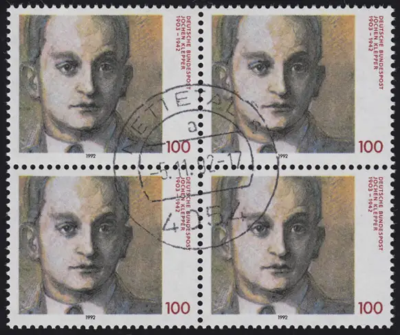 1643 Jochen Klepper: Viererblock, zentrischer Vollstempel NETTETAL 5.11.92