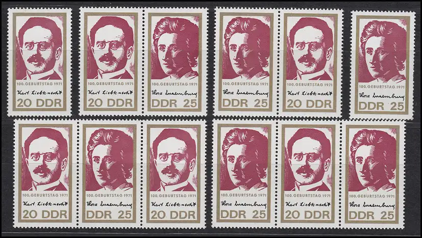 1650-1651 Luxemburg / Liebknecht, 4 Zusammendrucke + 2 Einzelmarken, Set **