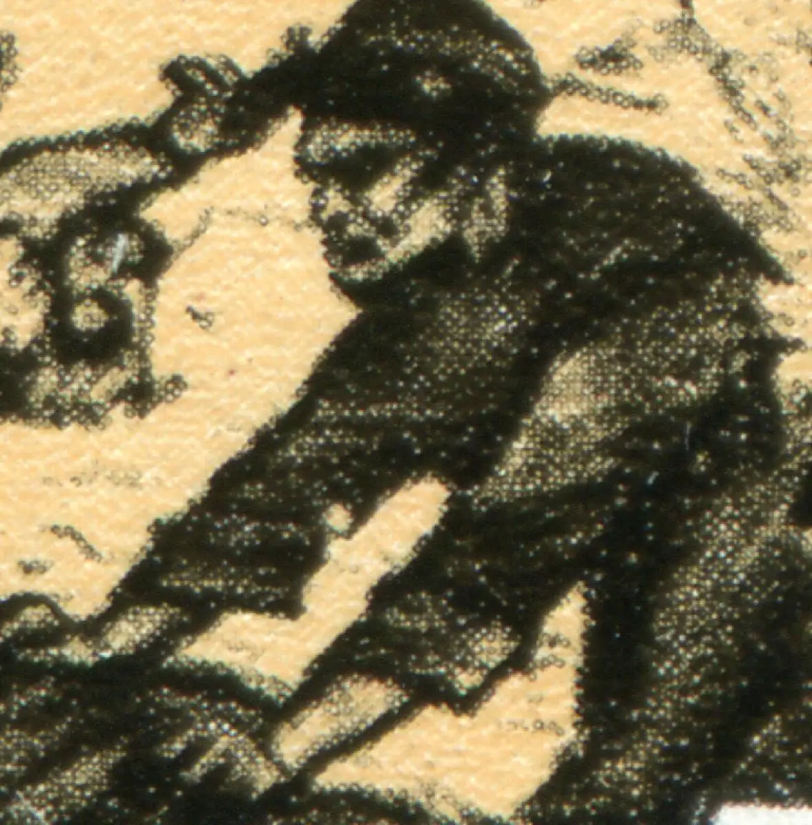 Plattenfehler: heller Fleck am linken Arm des vorderen Mannes