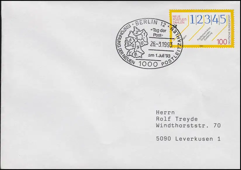 1659 Neue Postleitzahlen EF Bf SSt Berlin PLZ 0 bis 9 & Tag der Post 26.3.1993