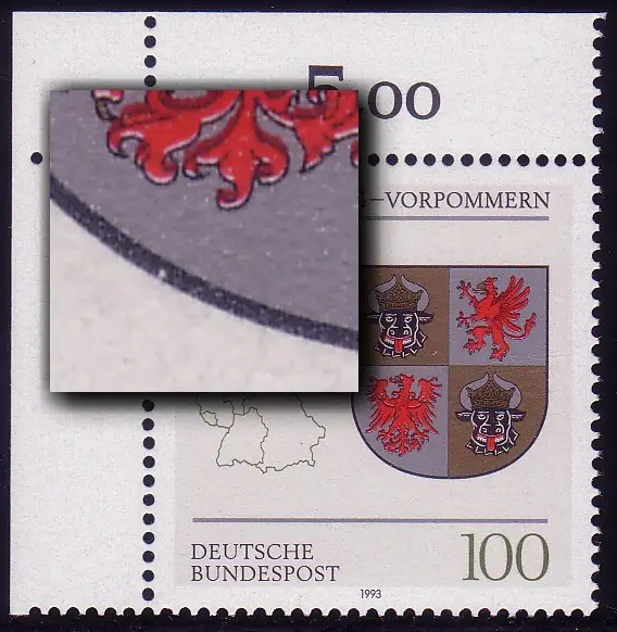 Plattenfehler weißer Punkt links unten im Rahmen des Wappens