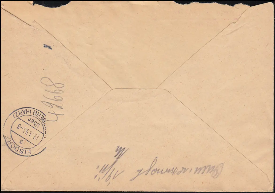 portogerechte Mischfrankatur Deutsche Verkehrsausstellung München auf Nachnahme-Drucksache, nach Eisdorf und zurück EISDOORF über HERZBERG / HARZ 19.11.53, Klappe fehlt, unsauber geöffnet
