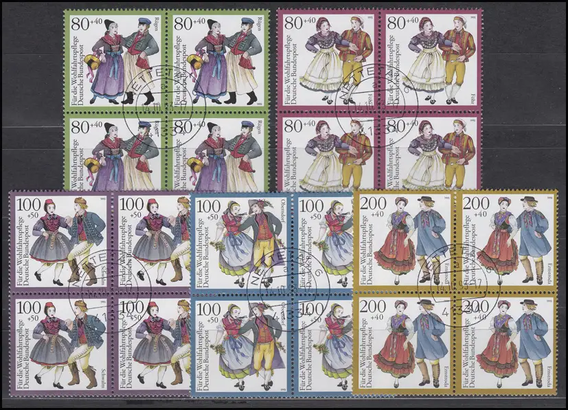 1696-1700 Trachten I: Viererblock-Satz zentrischer Vollstempel NETTETAL 14.10.93