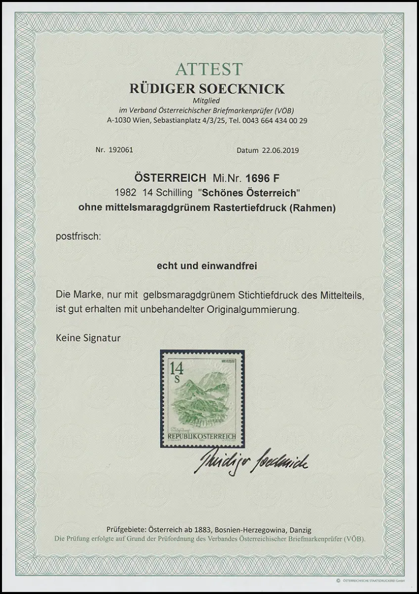 1696 F Schönes Österreich 14 S - ohne Rastertiefdruck (Rahmen), ** Fotoattest