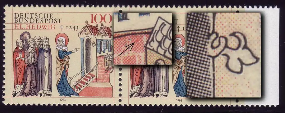 1701 Heilige Hedwig mit Doppel-PLF roter Fleck und Linenbruch, Rand-Paar **