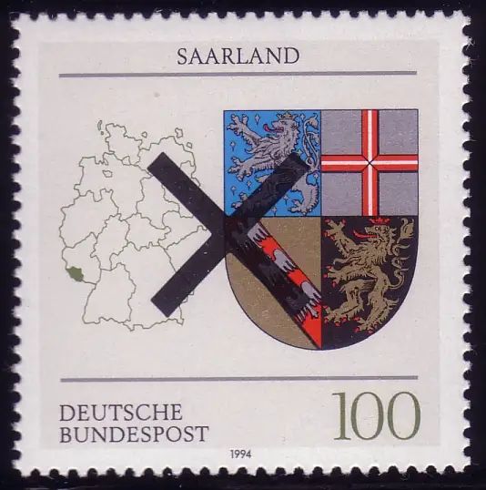 1712 Saarland, amtliche Andreaskreuz-Entwertung