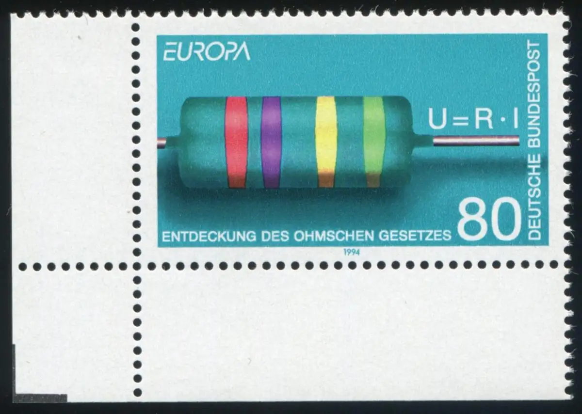 Punkt im O von BUNDESPOST, Punkt in der 8 und Einbuchtung in der 0 bei der Wertangabe 80