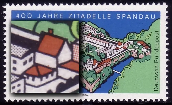 1739 Spandau mit PLF: kleiner brauner Punkt auf dem Dach unter S von SPANDAU, **