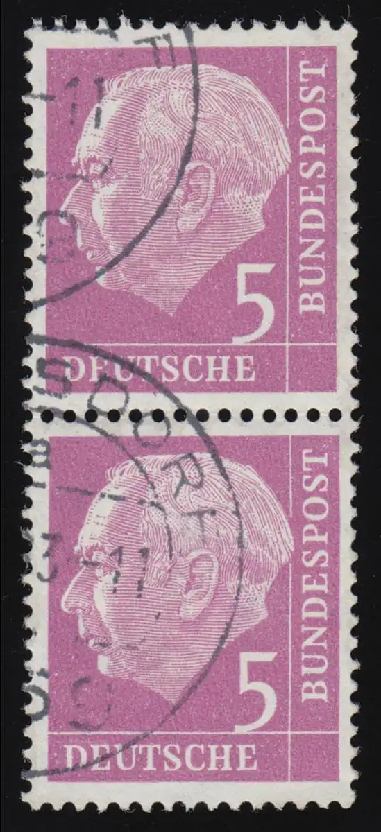 179xwR Heuss 5 Pf glatte Gummierung mit Nummer 585 im Paar, gestempelt