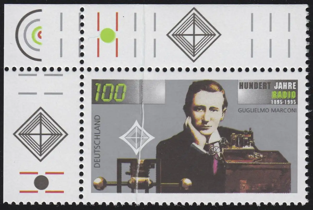 1803 Radio - Ecke oben links - markante senkrechte, überdruckte Quetschfalte **