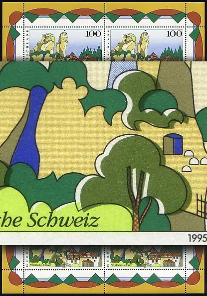 1807 Fränkische Schweiz-Kleinbogen: Passerverschiebung olivgrün und hellgrün **