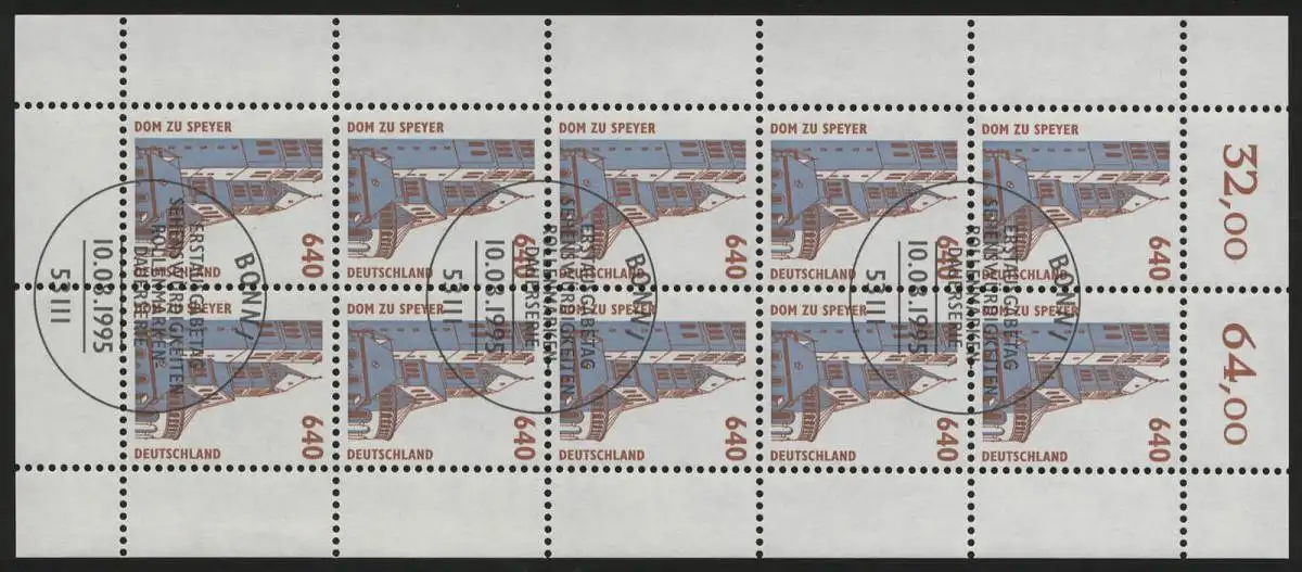 1811 SWK 640 Pf Dom zu Speyer - 10er-Bogen ESSt Bonn