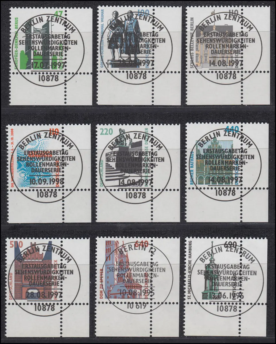 1811 ff SWK 9 DM-Werte aus 10er-Bogen kpl. Ecken unten rechts, Satz ESST Berlin