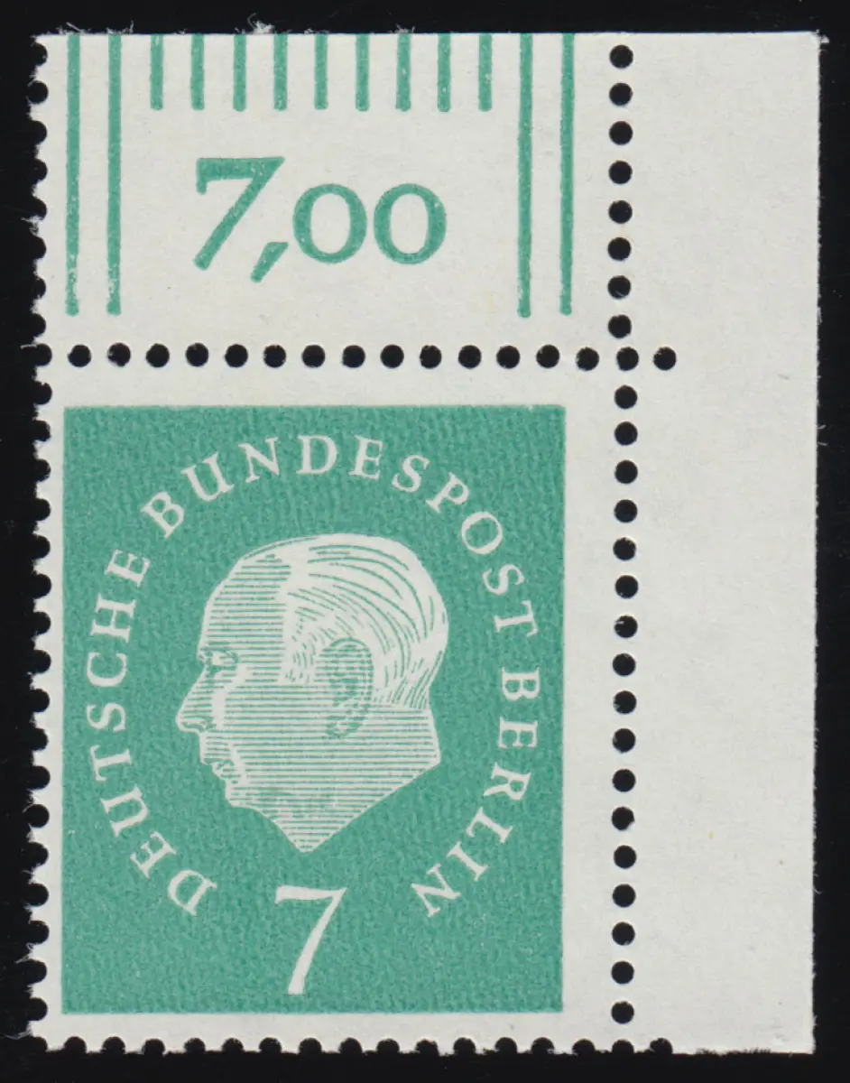 182 Heuss 7 Pf Ecke or ** postfrisch