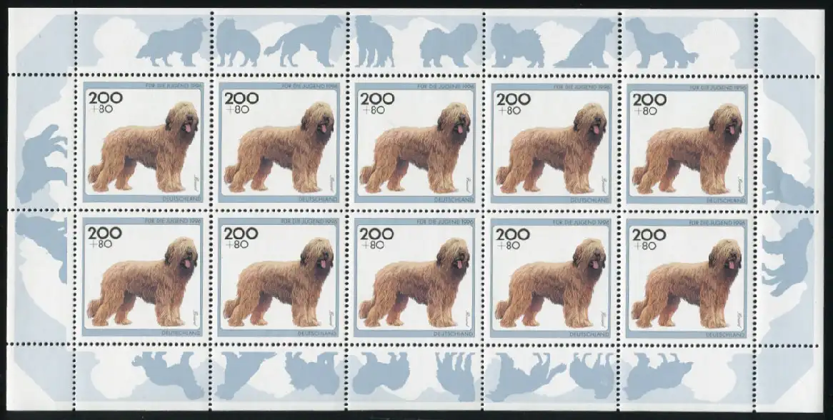 1840 Briard - 10er Bogen mit PLF schwarzer Strich rechts am Kopf, Feld 3 **