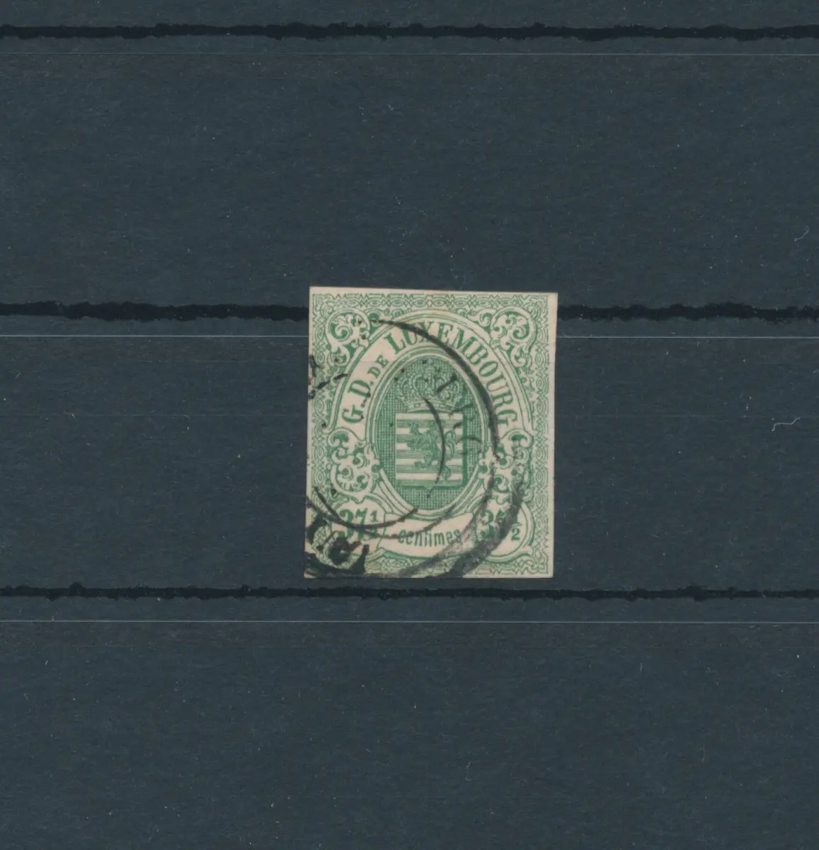 1859 - 63 LUXEMBURG - Nr. 10 - 37 1/2 Cent grün, ungezähnt - GEBRAUCHT Signatur A. Diena - E. Diena Wappen Einheitskatalog Euro 250 schwarze Kassette