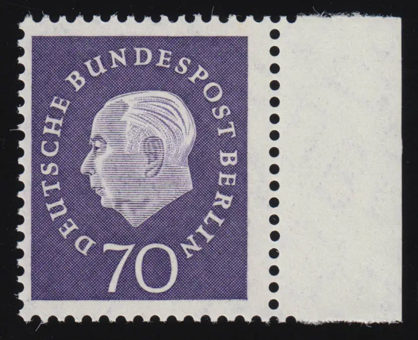 186 Heuss 70 Pf Seitenrand re. ** postfrisch
