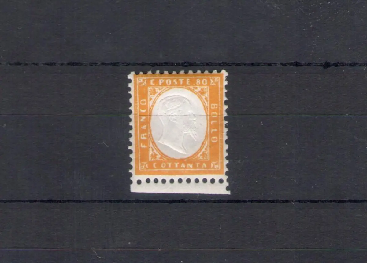 1862 Königreich Italien, Nr. 4 - 80 Cent gelb orange, Abbild Vittorio Emanuele II, POSTFRISCH** - Gute Zentrierung 80 Cent. gelb orange, neu und perfekt mit Vollgummi und original Sächsischer Katalog Euro 450 - Sehr gute Zentrierung rote Box Lot Claudio