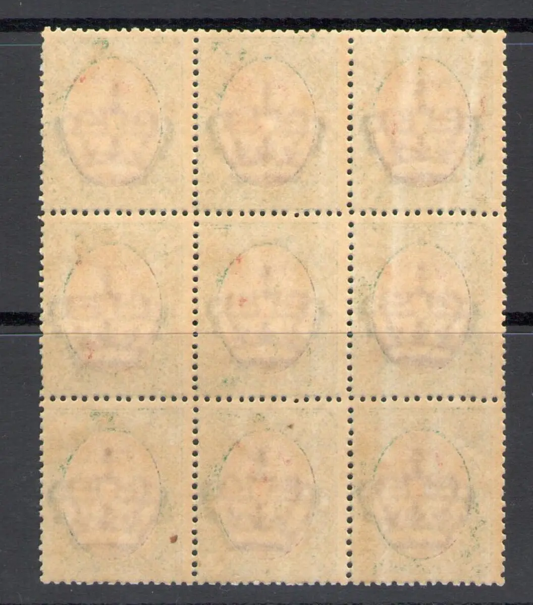1889 Italien - Königreich - Umberto I,n 49, 5 Lire grün, Block von 9 Exemplaren, normale Zentrierung postfrisch ** Sächsischer Katalog Euro 810 - 1 Alb Rosso