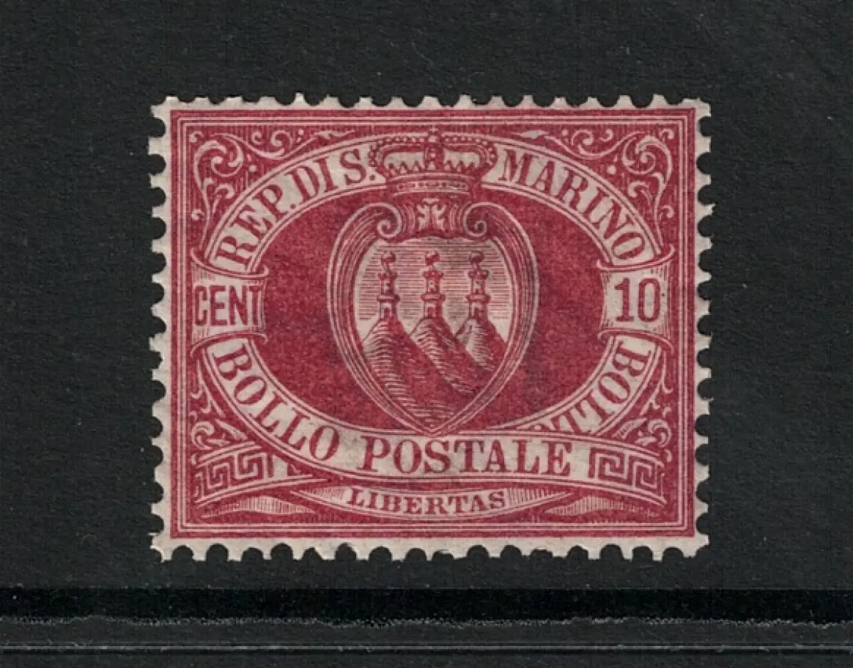 1892-94 SAN MARINO, Sächsischer Katalog # 28, 10 Cent rotbraun, postfrisch ** Sehr gute Zentrierung SÄCHSISCHER KATALOG Euro 162 Box M Holz