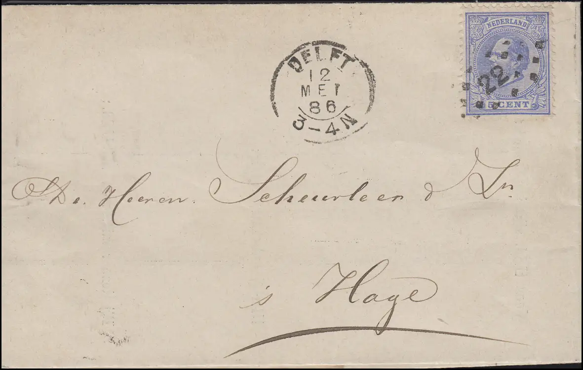 19 König Wilhelm III. 5 C. EF auf Brief DELFT 12.5.86 / Nummer 22 nach Den Haag