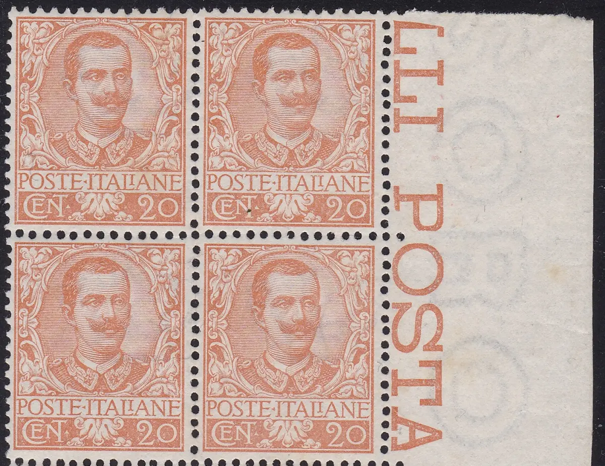 1901 ITALIEN - Nr. 72 Floreale 20 Cent. orange, Viererblock, postfrisch**