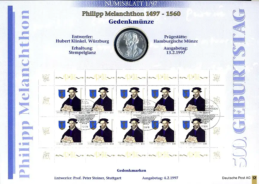 1902 Melanchthon - Numisblatt 1/97 - Erstes Numisblatt Deutschlands!
