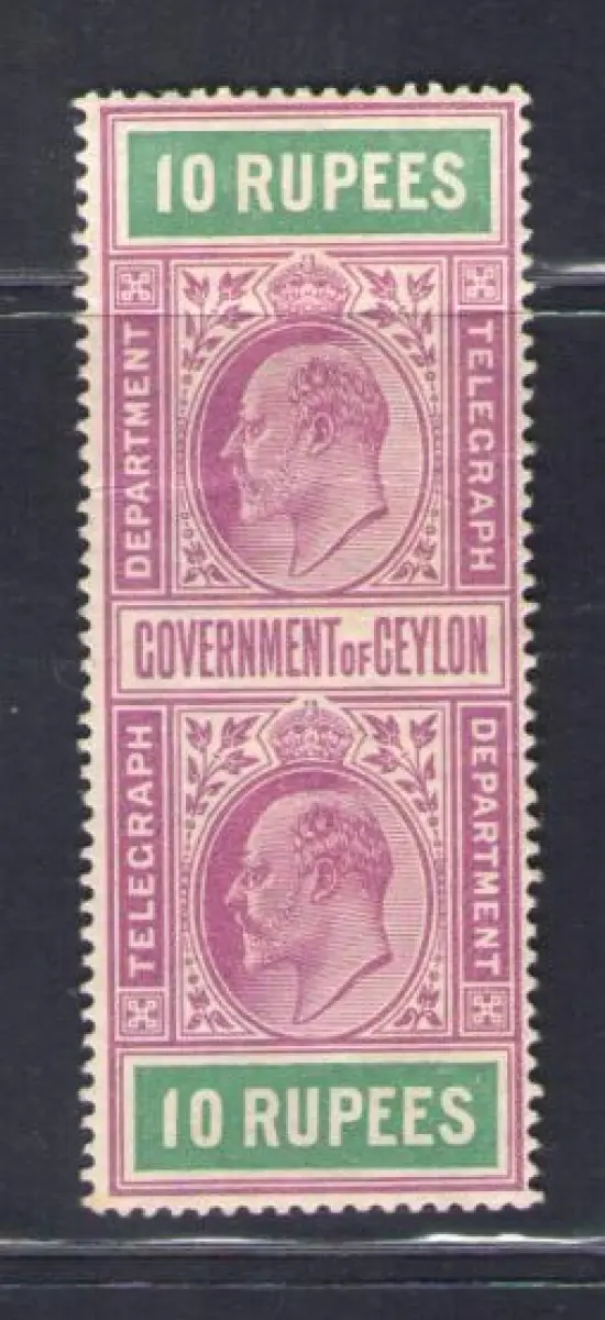 1903-04 Ceylon, S.G. Telegraphen Nr. T177 - 10r. reddish purple and green, MH* - Effige di Edoardo VII Catalogo Stanley Gibbons £ 1.000 - Lotto Colonie Album Rosso