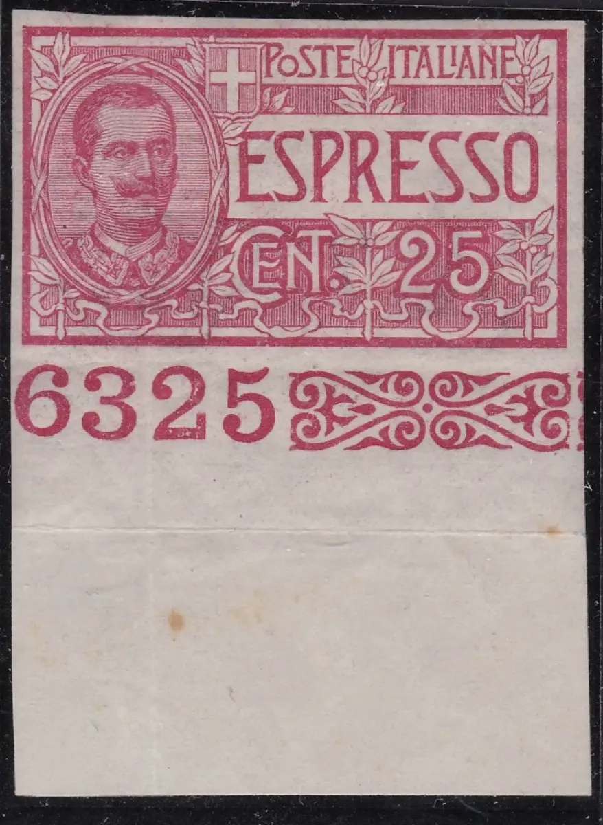 1903 KÖNIGREICH ITALIEN - EXPRESS Nr. 1 25 Cent. rot MLH / * BLATTRAND MIT TISCHNUMMER 6325 SÄCHSISCHER KATALOG Euro 320 ++