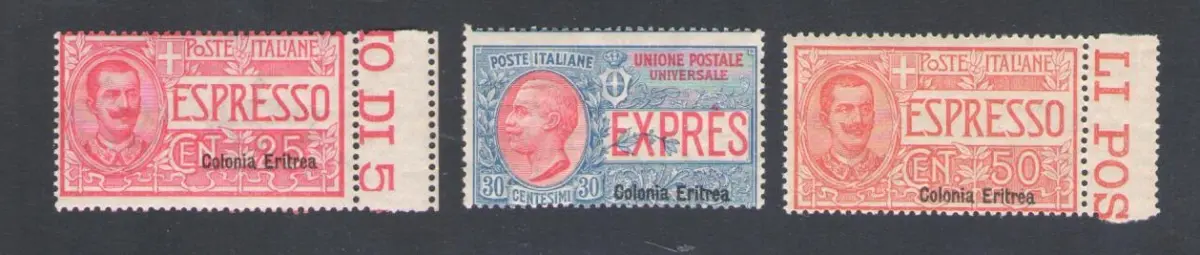 1907-21 Eritrea, Espressi n. 1/3 - postfrisch ** Sächsischer Katalog Euro 800 Lot M