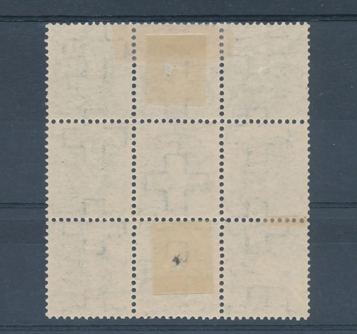 1907 SCHWEIZ - Schweiz zu Fuß - 40 Cent grau, 11 x 11 gezähnt, 9er Block mit Briefmarke ohne Diadem, 'Ohne Diadem' postfrisch** - 3 Marken mit Vollgummi und Original und 6 Marken mit Linguella-Spur - die Briefmarke ohne Stirnband ist MNH** - ORIGINAL & VOLLGUMMI Zumstein 96B Euro 1370 9er Block A / Lot Schweiz Leuccht rot groß