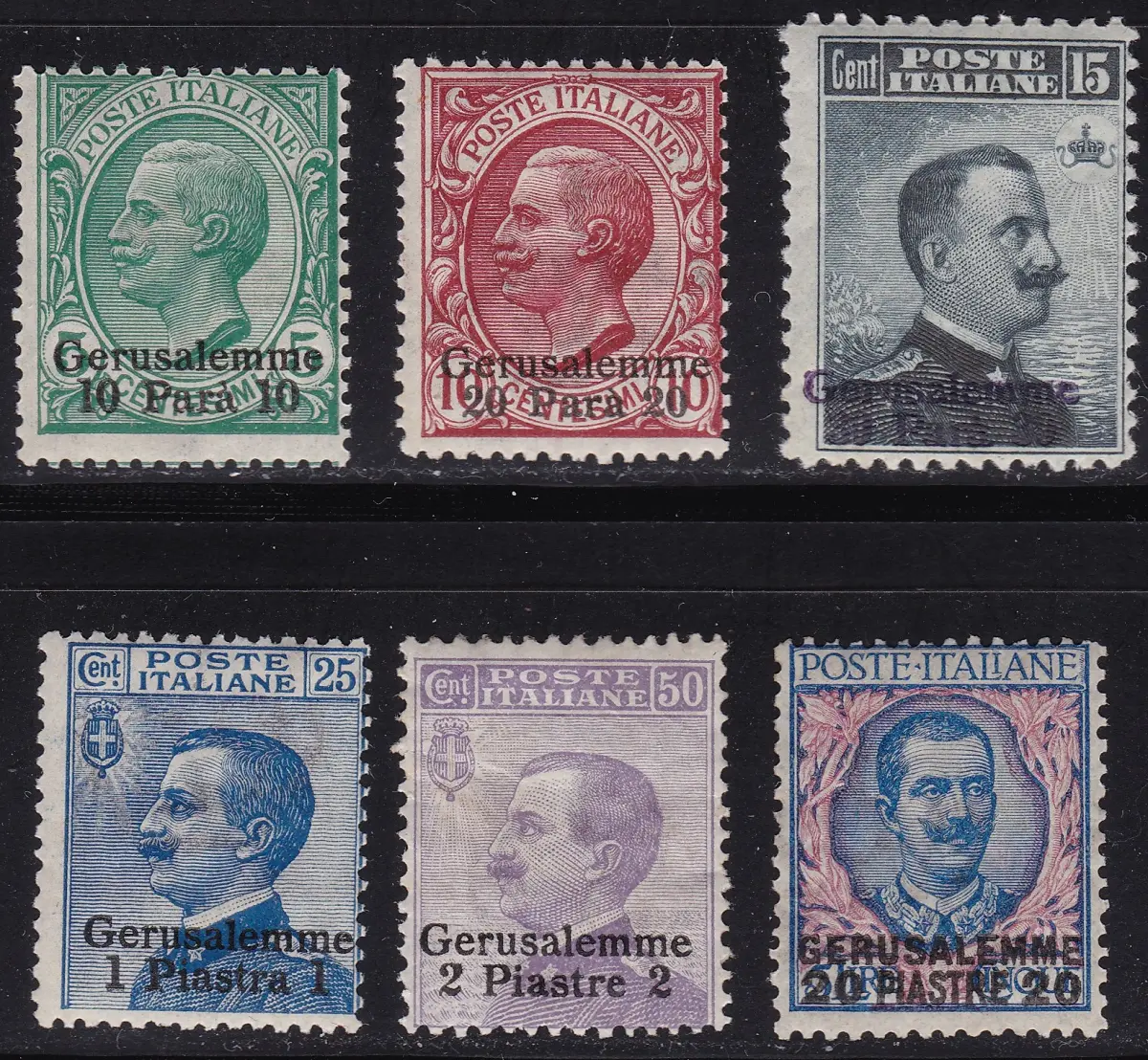1909-11 JERUSALEM, Nr. 1/5+7 6 Werte MNH/** Italienische Briefmarke von 1901/10 überdruckt Sächsischer Katalog Euro 4575 Lot 81 grünes Album 5