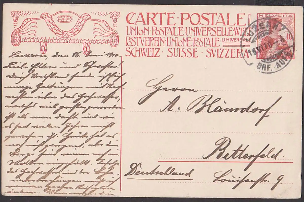 1910 LUZERN INAUGURATION DU MOMENT COMEMORATIF DE LA FONDATION L UNION POSTALE UNIVERSELLE
