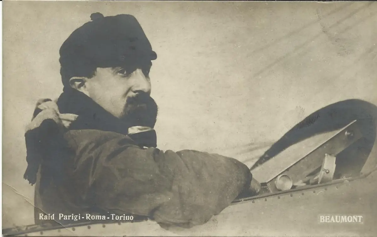 1911 Raid Paris - Rom - Fotokarte, Pilot Beaumont - 1911 Raid Paris - Rom - Fotokarte, im Vordergrund der Pilot Beaumont im Flugzeug (Kat. Longhi Nr. 467) neu mit gebogener Ecke Nr. 228/5