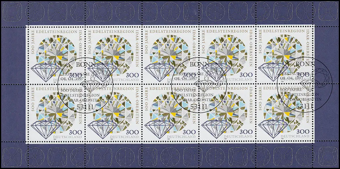 1911III+V Edelsteinregion - 10er-Bogen mit PLF III (Feld 7) und PLF V (F.4) ESSt